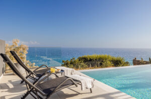 Master bedroom with private WC and a 20 sq.m. terrace offering unobstructed views of sea and sky.